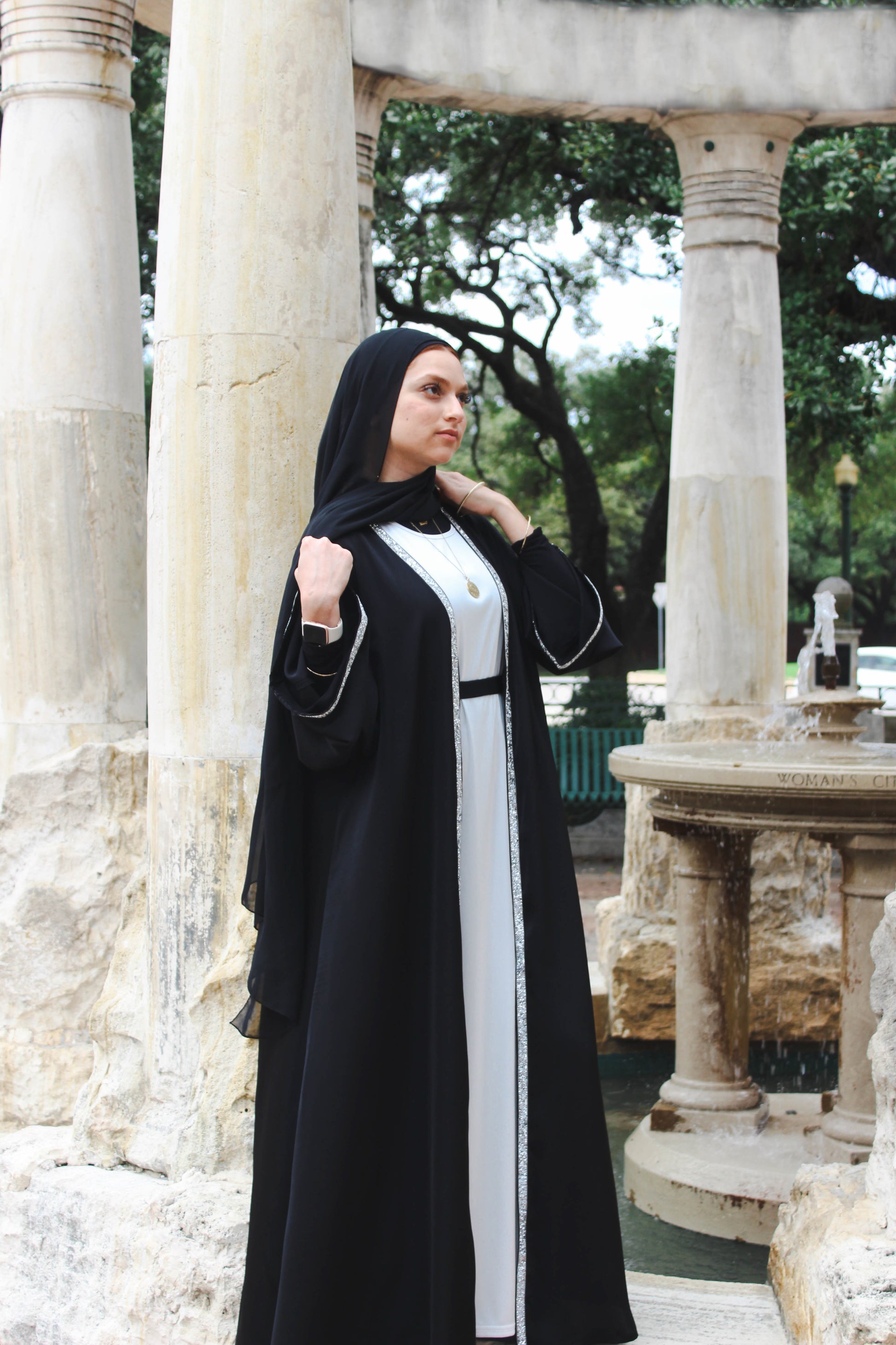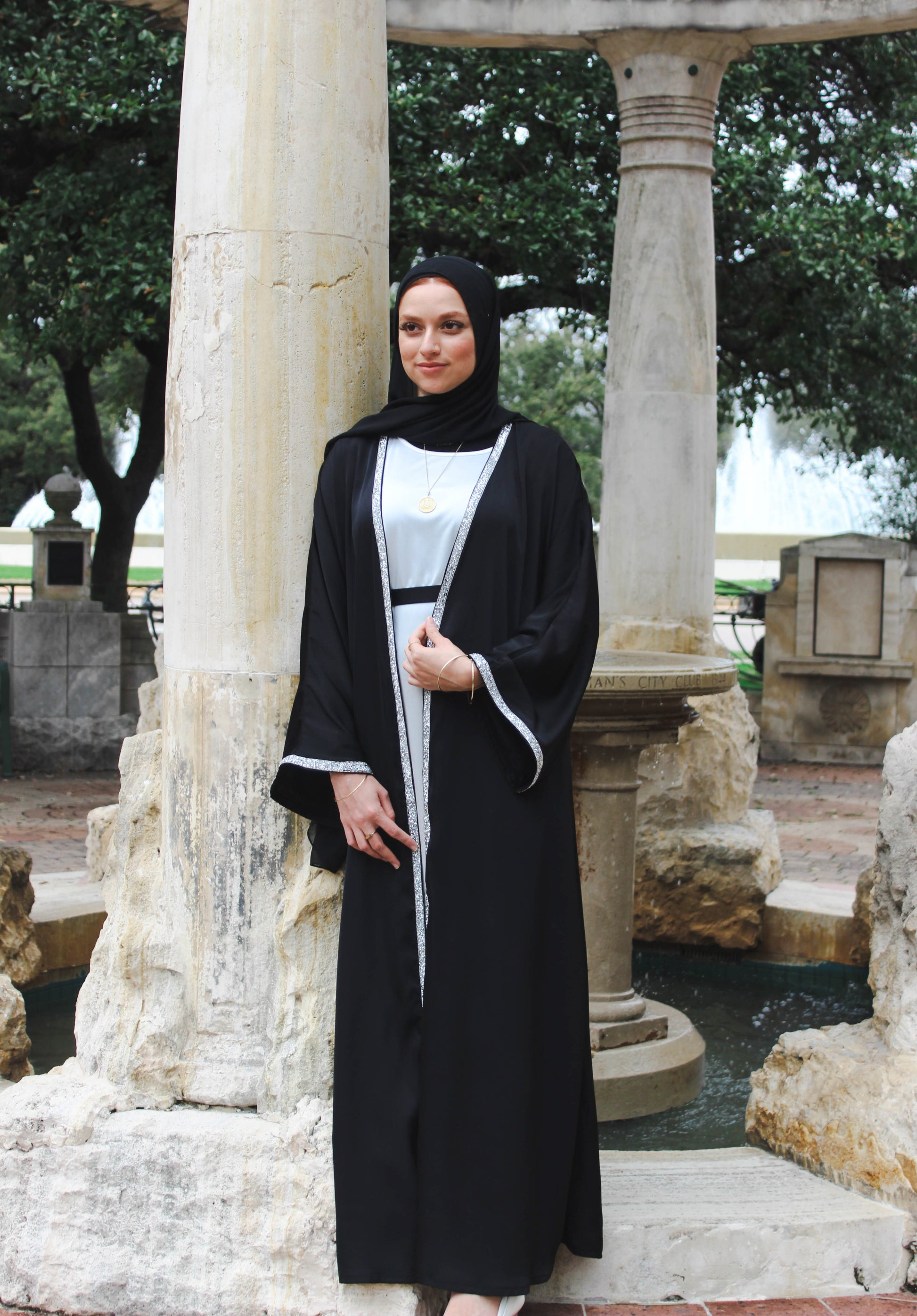 Immerse yourself in the luxurious embrace of the Sajda Abaya, a sophisticated ensemble designed for the discerning woman who appreciates complete elegance. Crafted from Black Soft Satin, this abaya set includes an inner dress, an open abaya, and a perfectly coordinated belt.